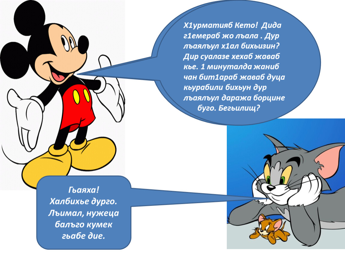 Х1урматияб Кето! Дида г1емераб жо лъала . Дур лъаялъул х1ал бихьизин? Дир суалазе хехаб жаваб кье. 1 минуталда жаниб чан бит1араб жаваб дуца кьурабили бихьун дур лъаялъул даража борцине