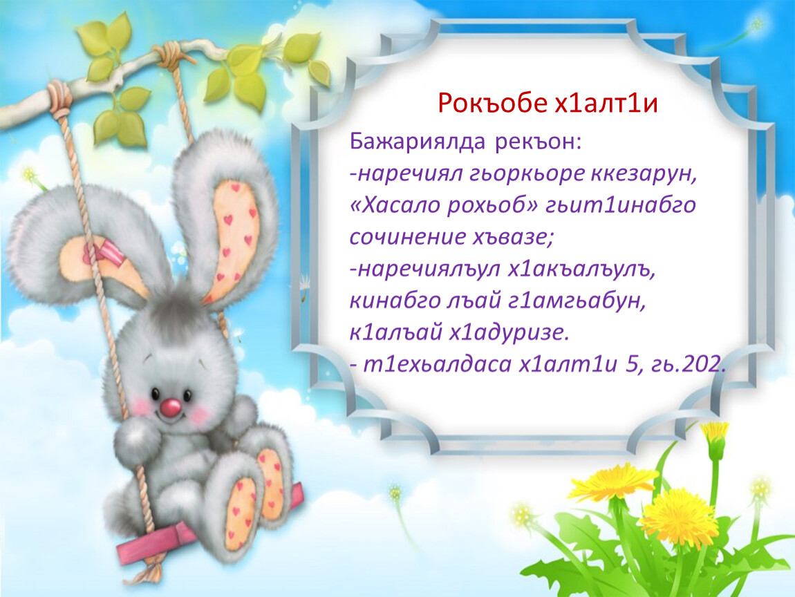 -наречиял гьоркьоре ккезарун, «Хасало рохьоб» гьит1инабго сочинение хъвазе;