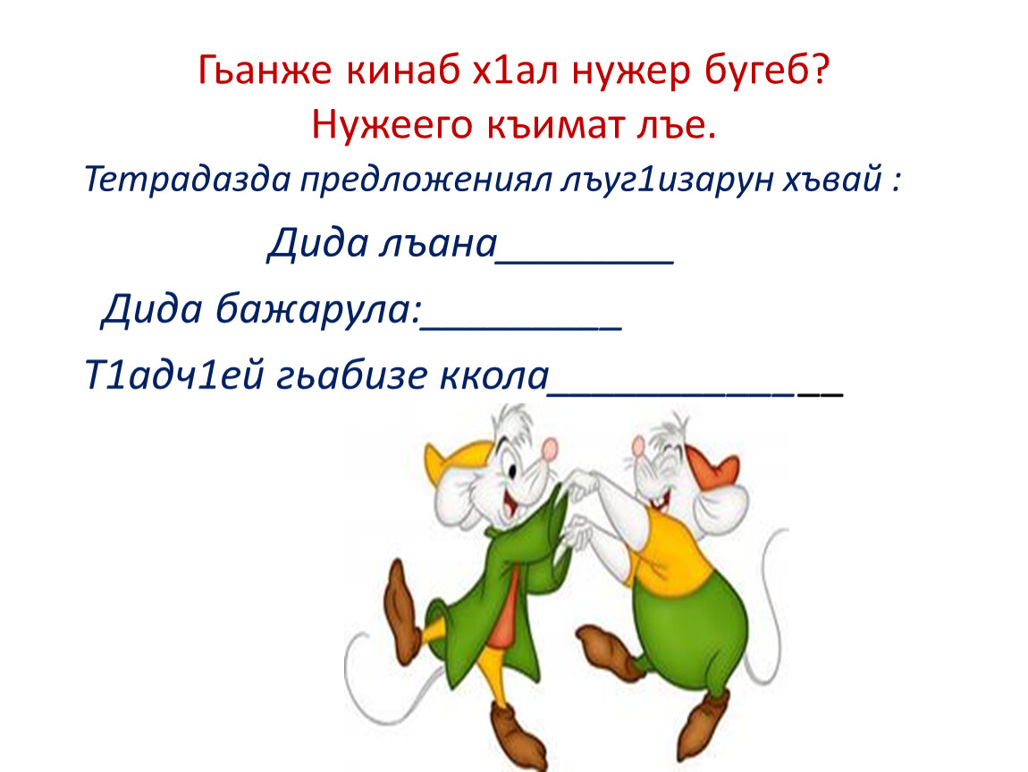 Тетрадазда предложениял лъуг1изарун хъвай :
