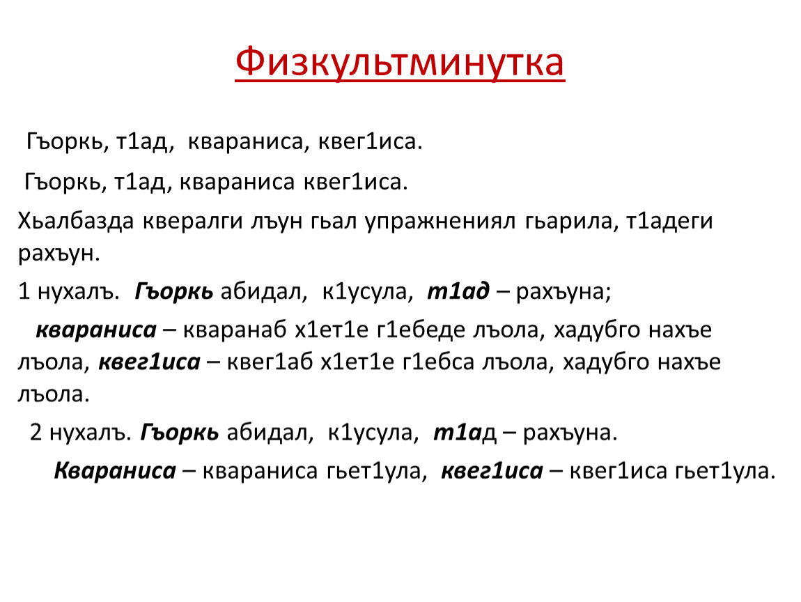 2 нухалъ. Гъоркь абидал, к1усула, т1ад – рахъуна.