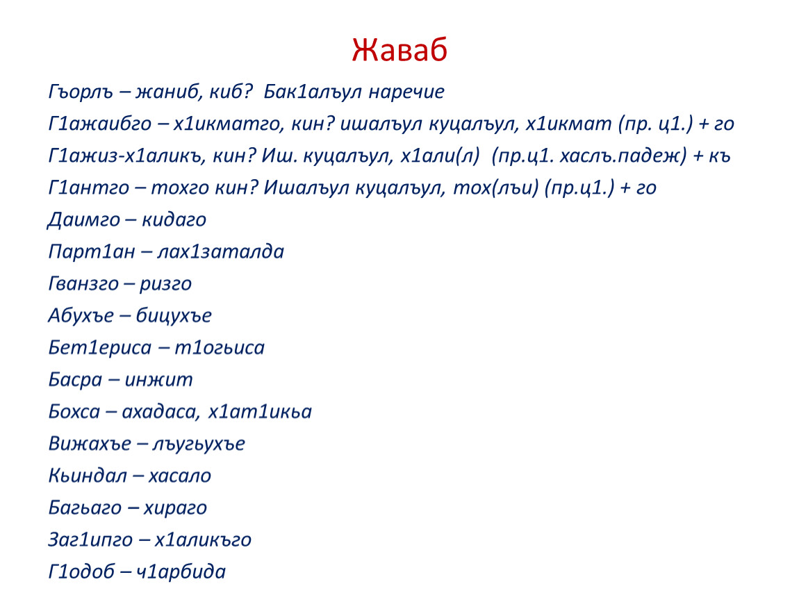 Гъорлъ – жаниб, киб? Бак1алъул наречие