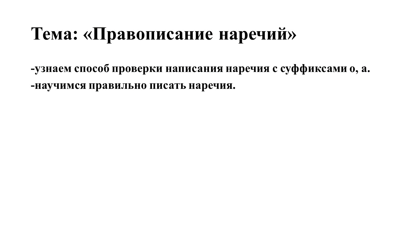 Тема: «Правописание наречий»
