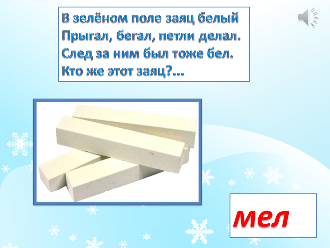 В зелёном поле заяц белый Прыгал, бегал, петли делал. След за ним был тоже бел. Кто же этот заяц?...
