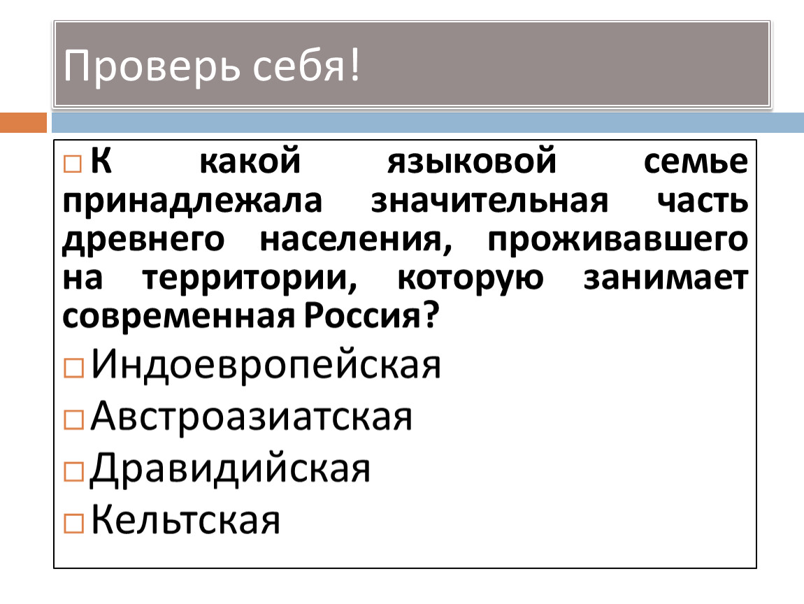 К какой языковой семье принадлежала значительная часть древнего населения, проживавшего на территории, которую занимает современная Россия?