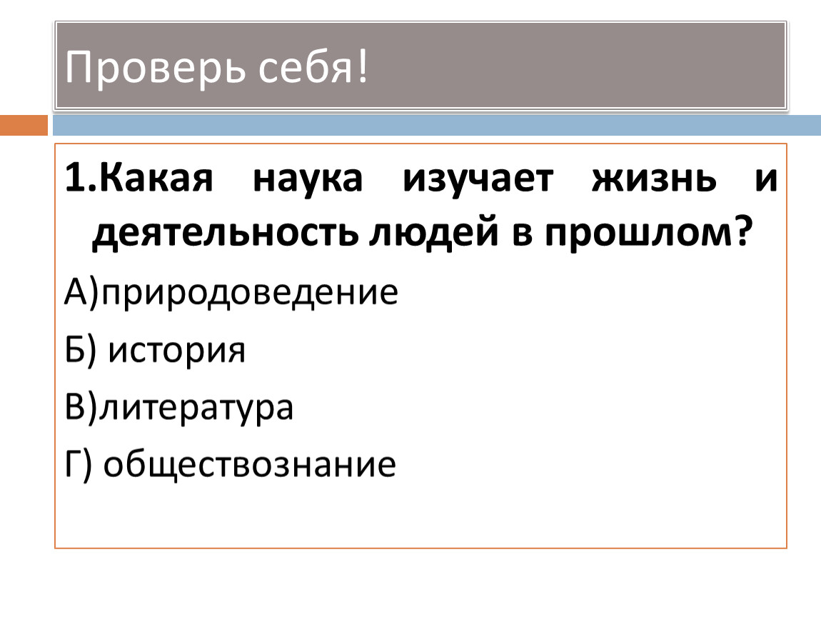 1.Какая наука изучает жизнь и деятельность людей в прошлом?