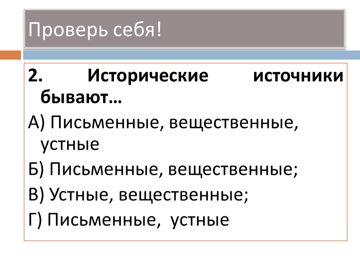 2. Исторические источники бывают…