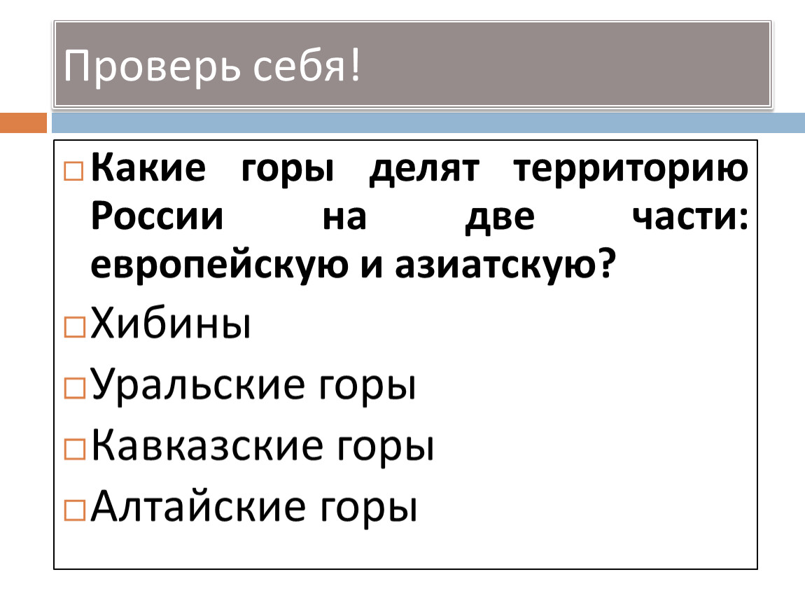 Какие горы делят территорию России на две части: европейскую и азиатскую?