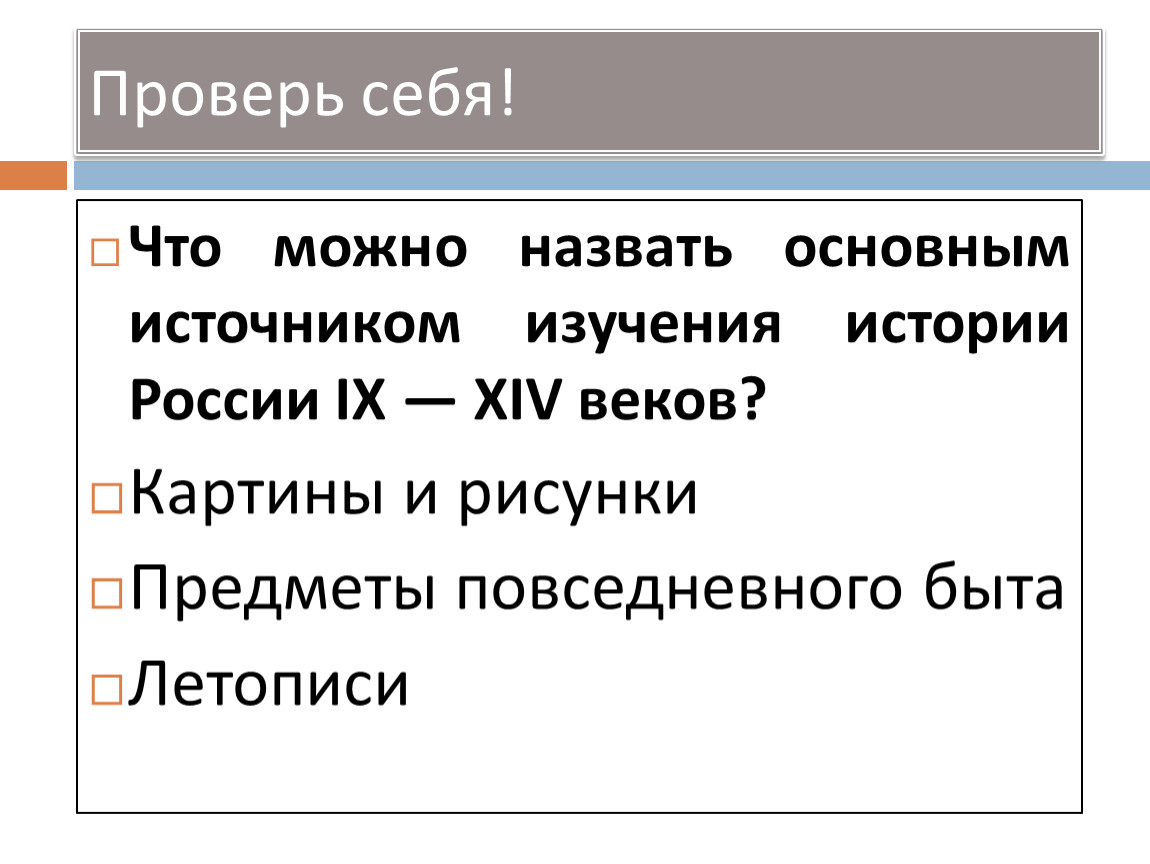 Что можно назвать основным источником изучения истории России IX — XIV веков?