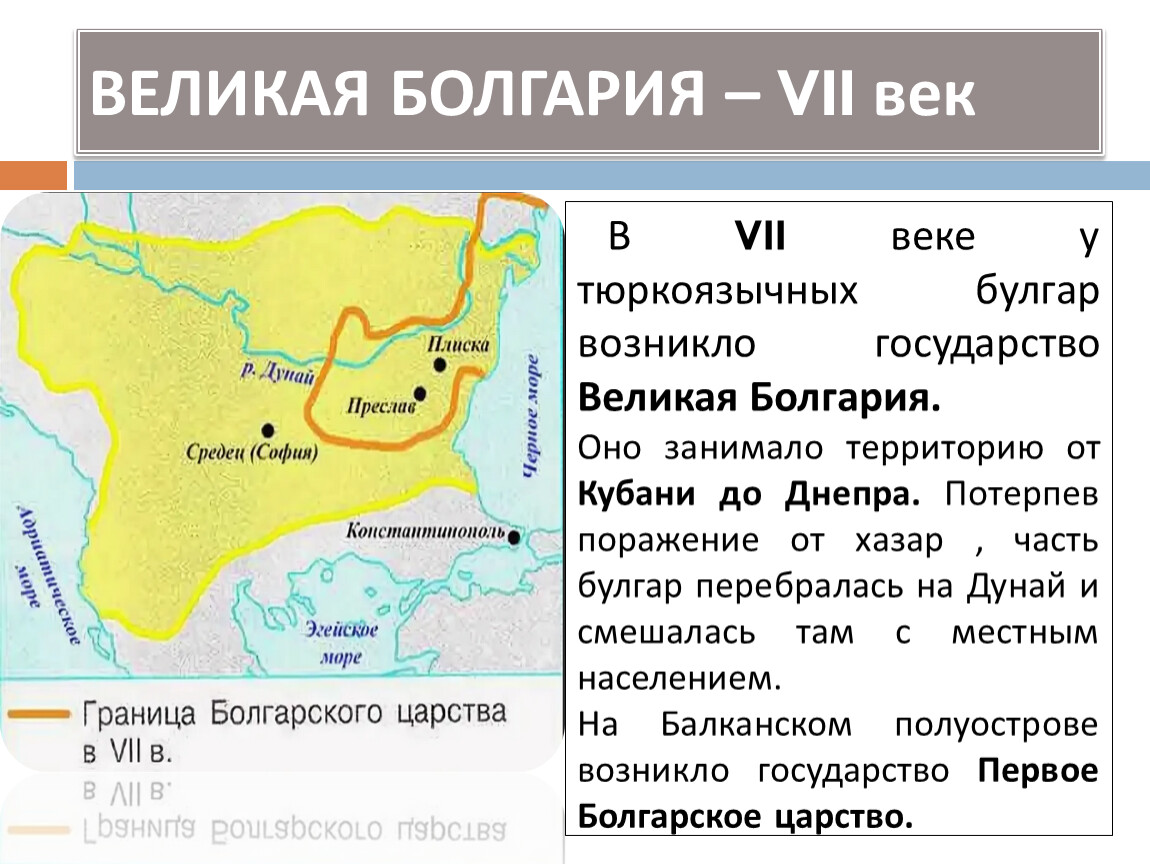 В VII веке у тюркоязычных булгар возникло государство Великая Болгария.