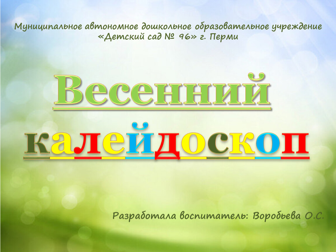 Разработала воспитатель: Воробьева О.С.