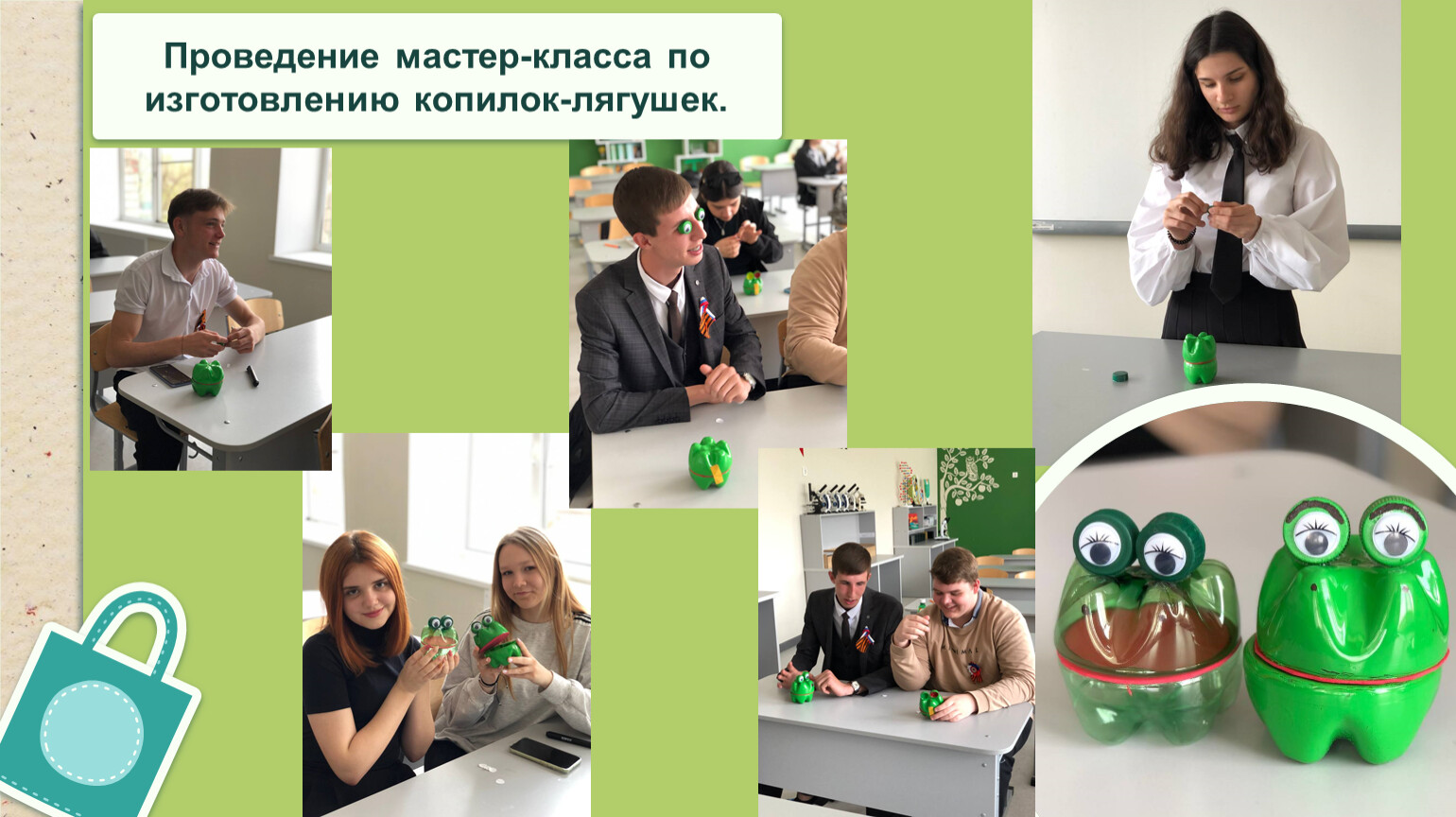 4. Проведение среди обучающихся нашей школы мастер-класса по изготовлению лягушек копилок.
