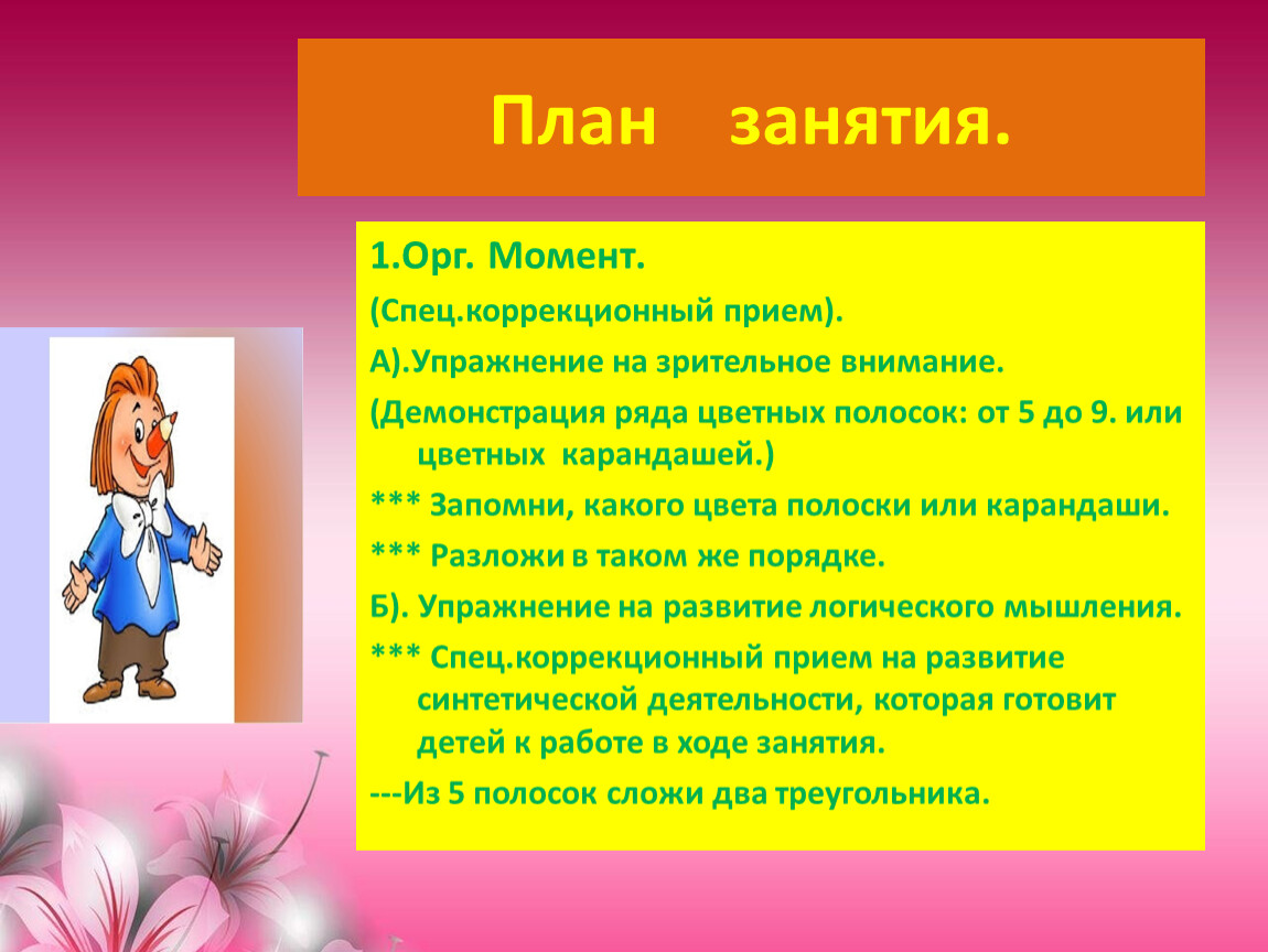 *** Спец.коррекционный прием на развитие синтетической деятельности, которая готовит детей к работе в ходе занятия.