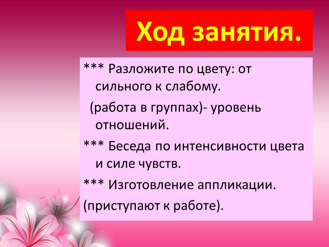 *** Беседа по интенсивности цвета и силе чувств.