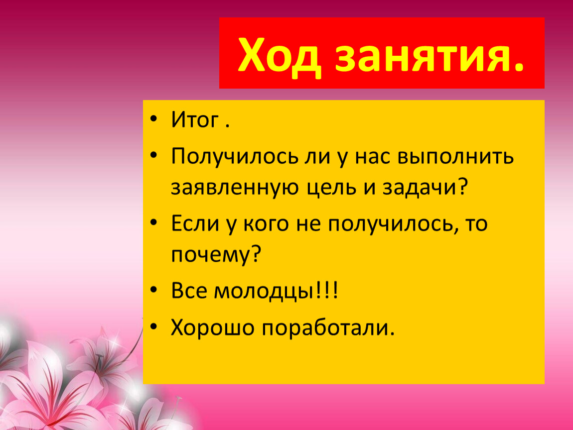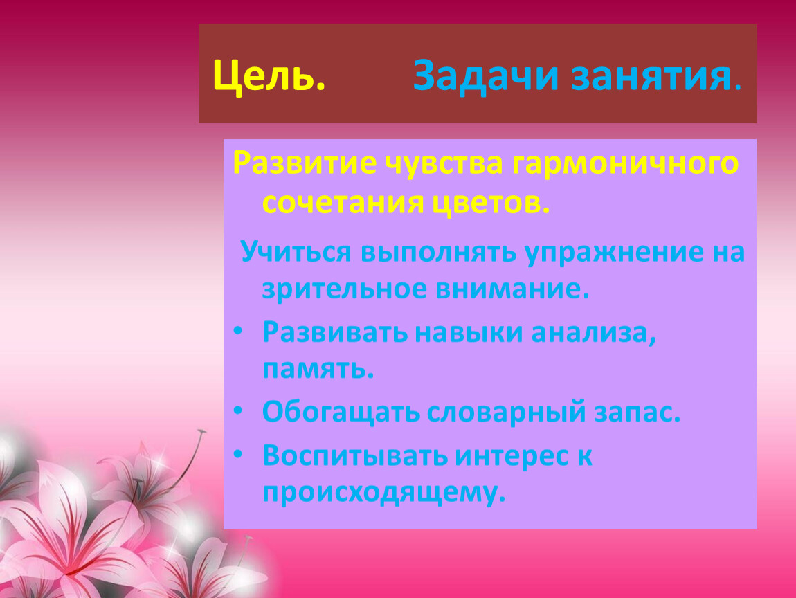 Цель. Задачи занятия.