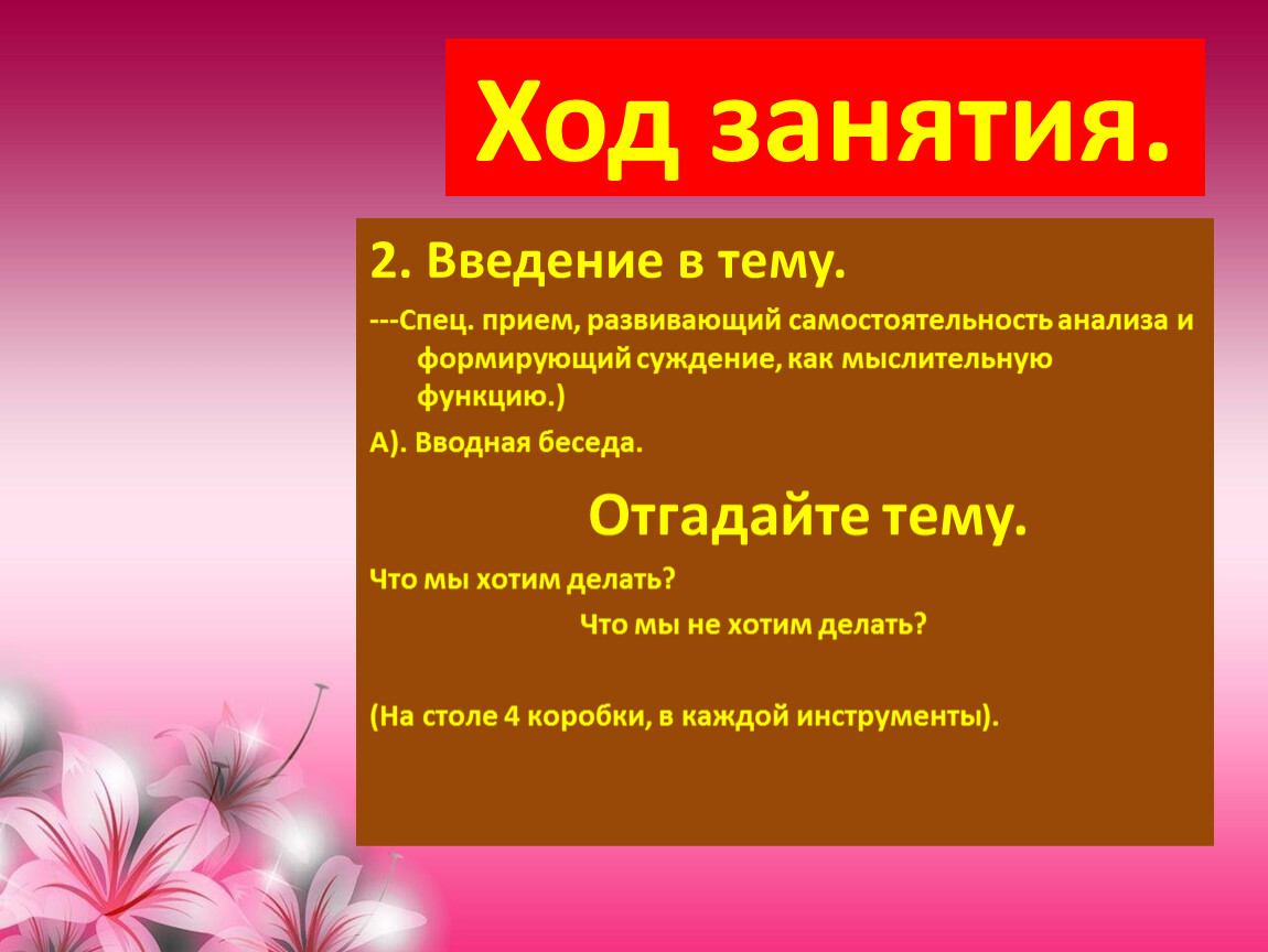 План занятия.