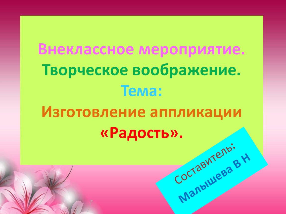 Внеклассное мероприятие.Творческое воображение.Тема:Изготовление аппликации «Радость».