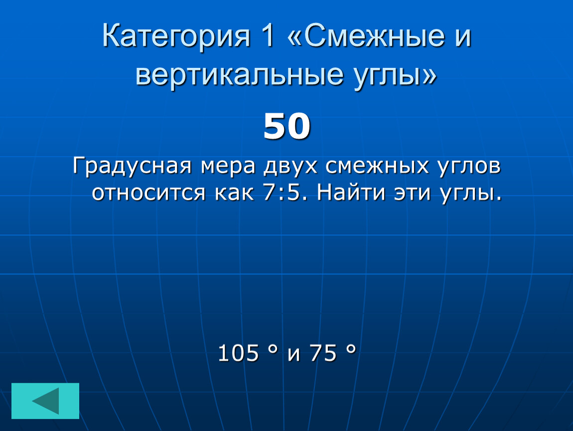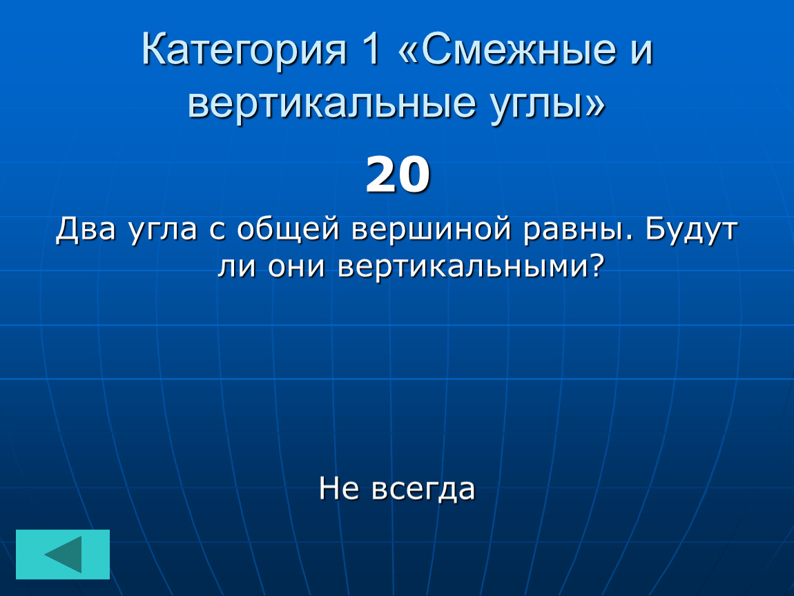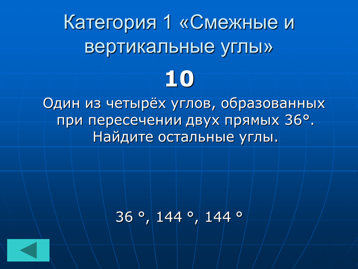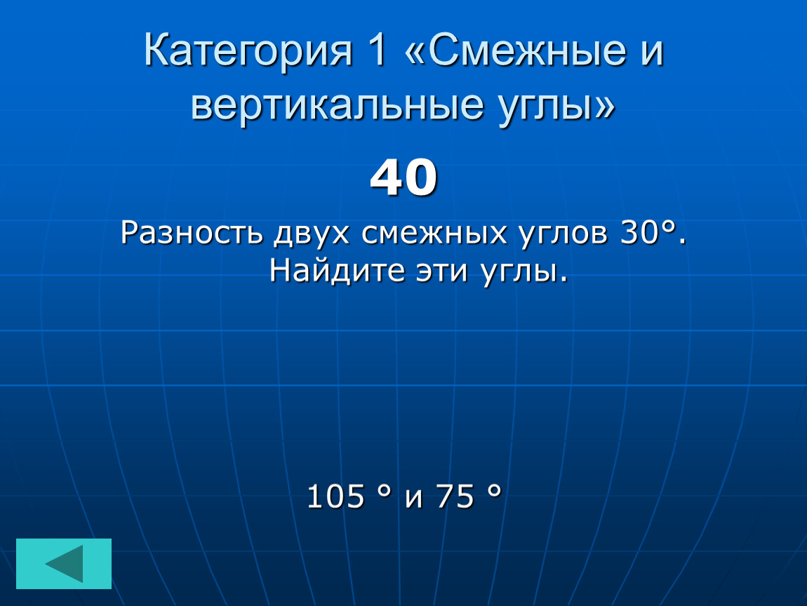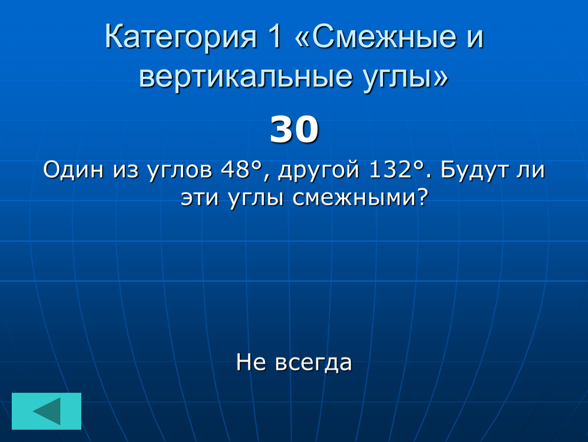Категория 1 «Смежные и вертикальные углы»