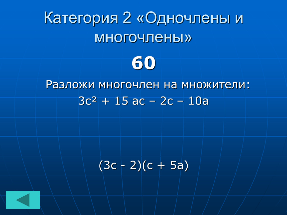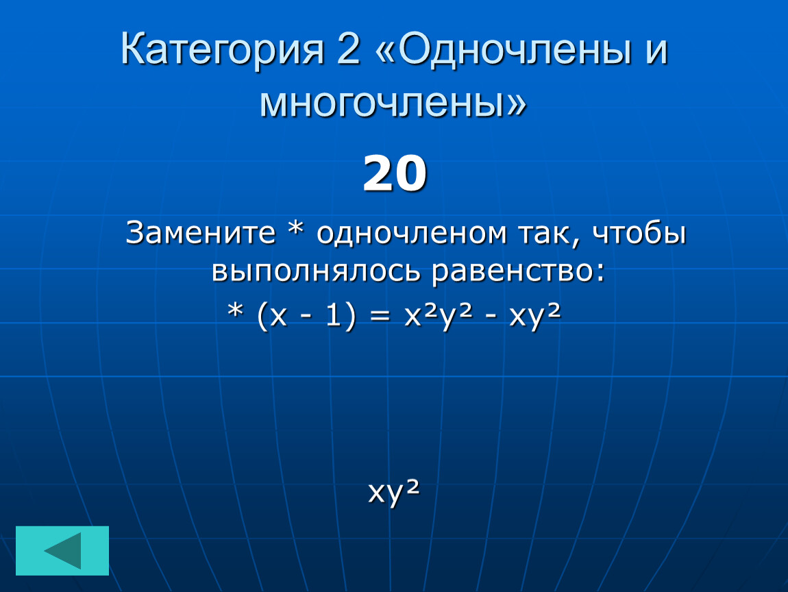 Категория 2 «Одночлены и многочлены»