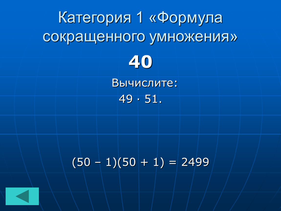 Категория 1 «Формула сокращенного умножения»