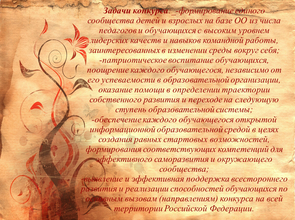 Задачи конкурса:_-формирование единого сообщества детей и взрослых на базе ОО из числа педагогов и обучающихся с высоким уровнем лидерских качеств и навыков командной работы, заинтересованных в изменении среды вокруг себя;