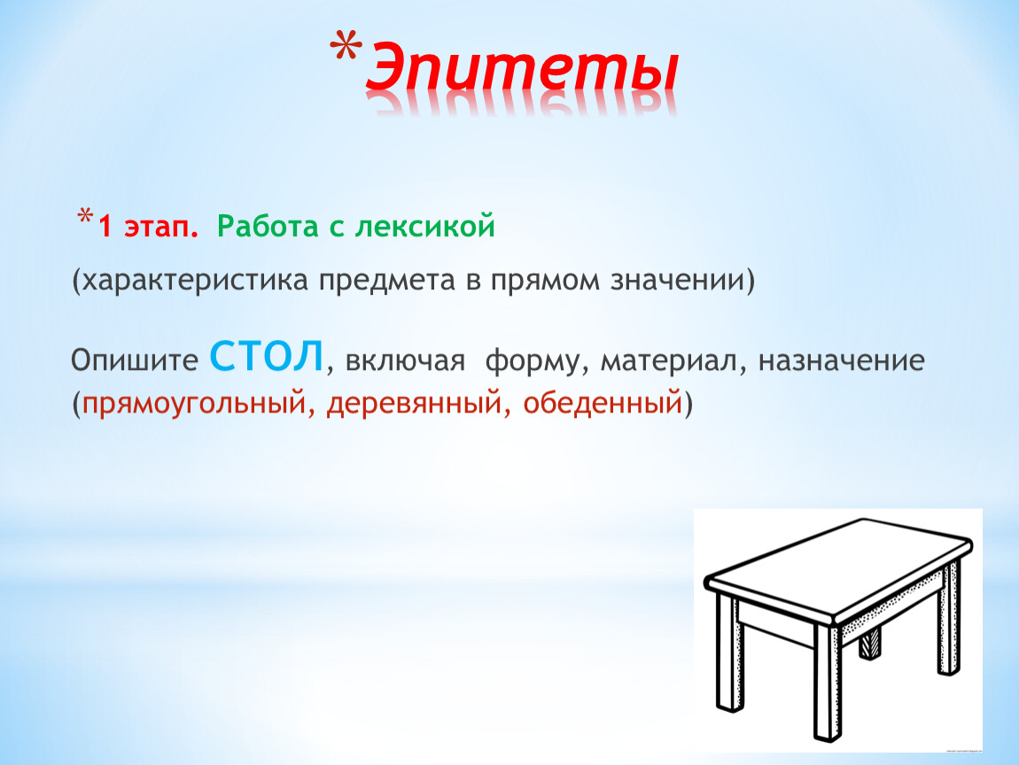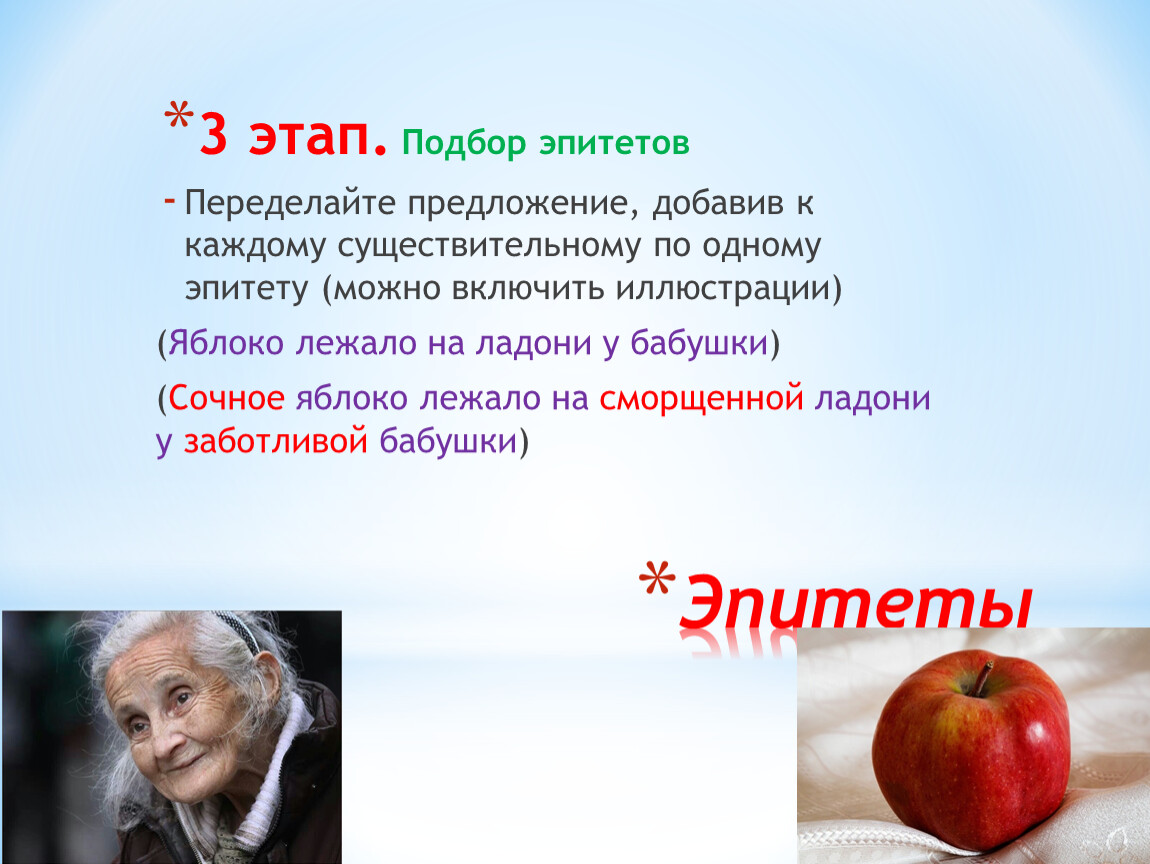 3 этап. Подбор эпитетов