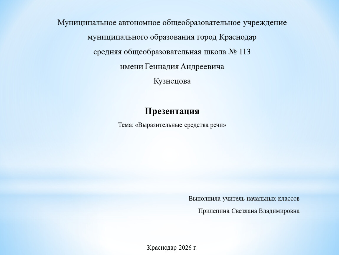 Выполнила учитель начальных классов