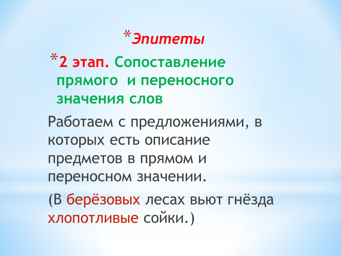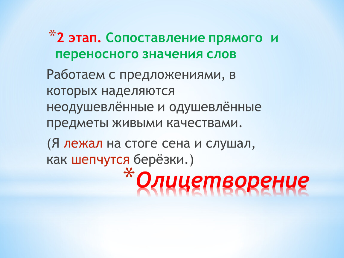 2 этап. Сопоставление прямого и переносного значения слов