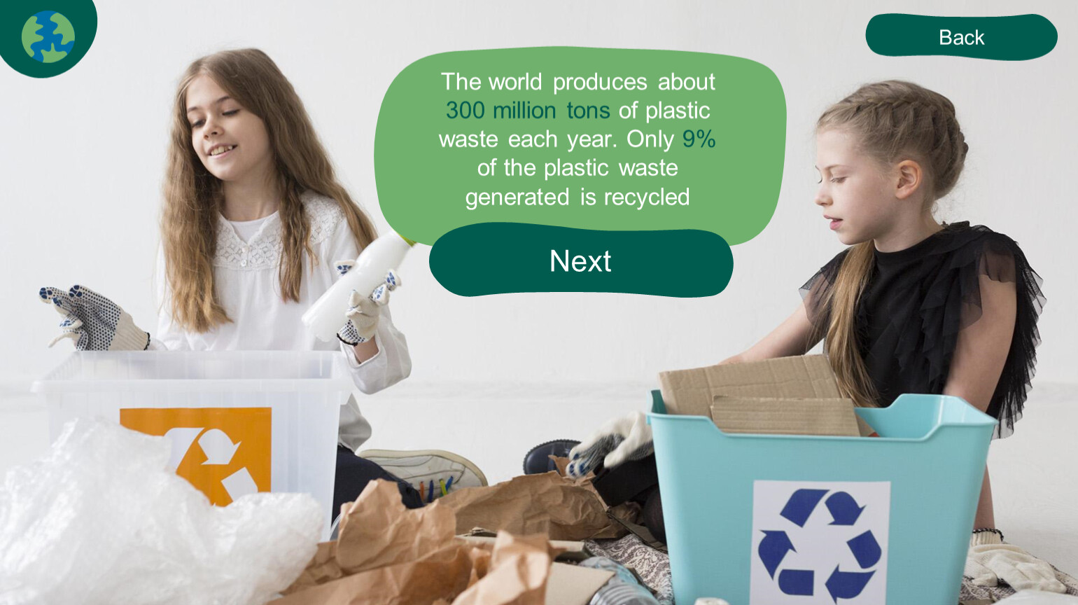 The world produces about 300 million tons of plastic waste each year. Only 9% of the plastic waste generated is recycled
