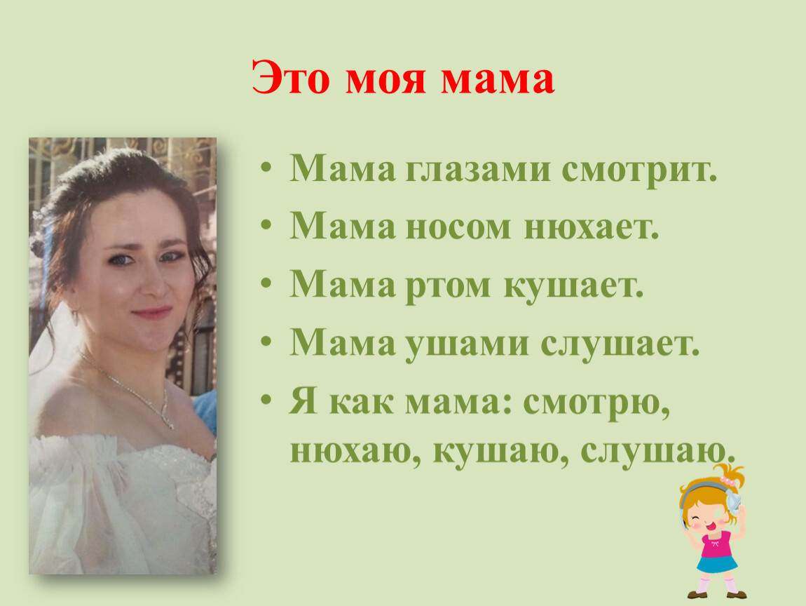 Я как мама: смотрю, нюхаю, кушаю, слушаю.