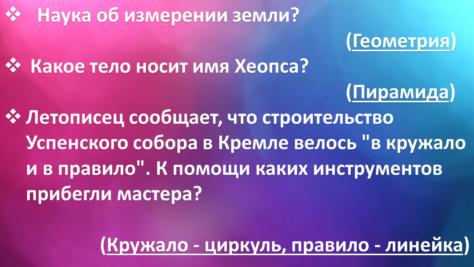 Летописец сообщает, что строительство Успенского собора в Кремле велось "в кружало и в правило". К помощи каких инструментов прибегли мастера?