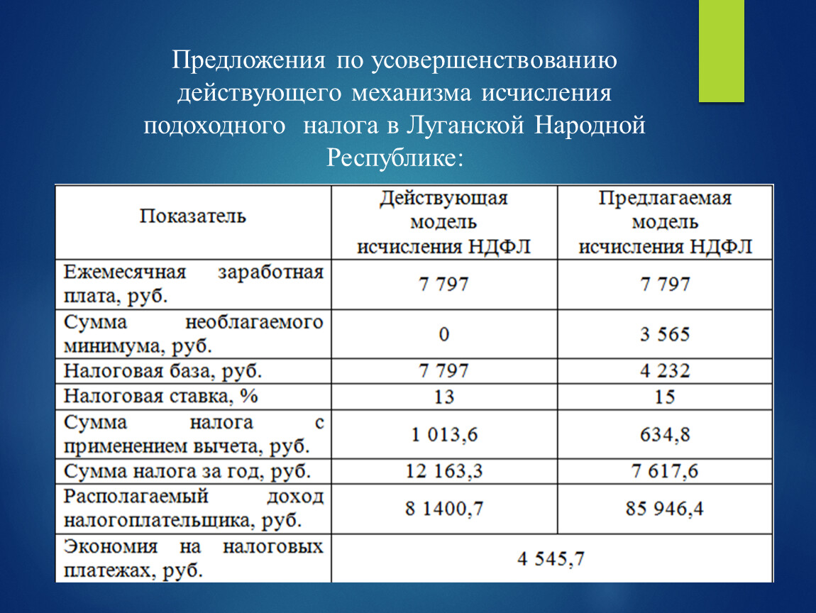 Предложения по усовершенствованию действующего механизма исчисления подоходного налога в Луганской Народной Республике: