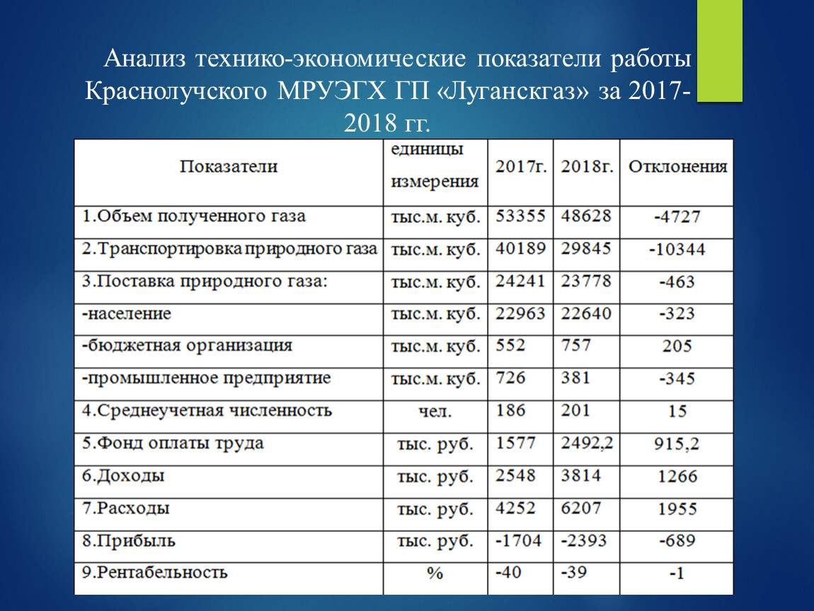 Анализ технико-экономические показатели работы Краснолучского МРУЭГХ ГП «Луганскгаз» за 2017-2018 гг.