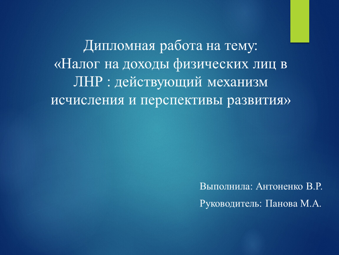 Дипломная работа на тему:«Налог на доходы физических лиц в ЛНР : действующий механизм исчисления и перспективы развития»