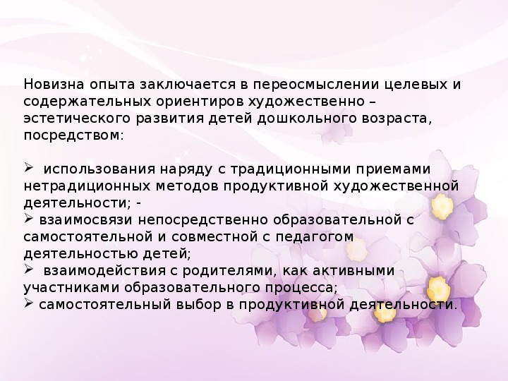 Новизна опыта заключается в переосмыслении целевых и