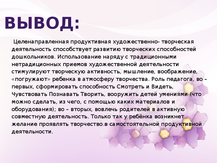 «погружают» ребенка в атмосферу творчества. Роль педагога, во –