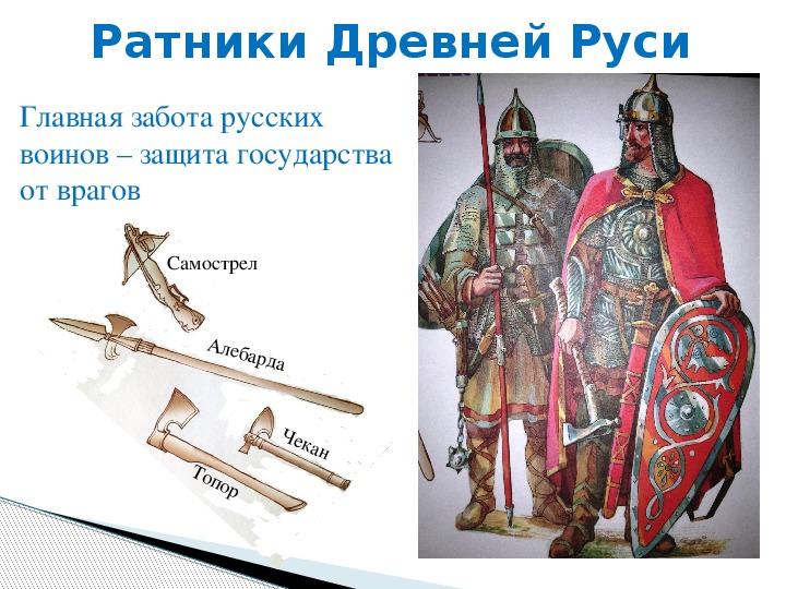 Ратники Древней Руси Главная забота русских воинов – защита государства от врагов
