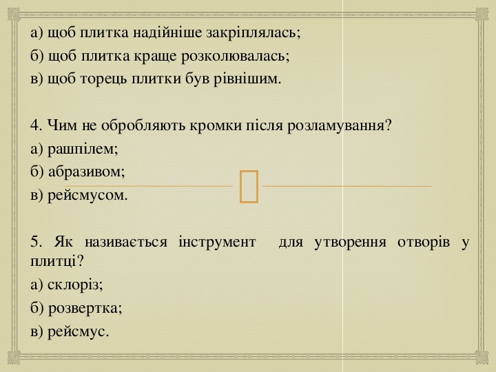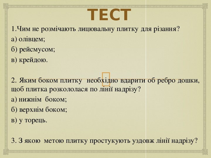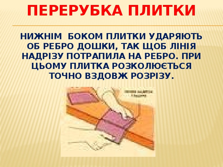 2. Яким боком плитку необхідно вдарити об ребро дошки,