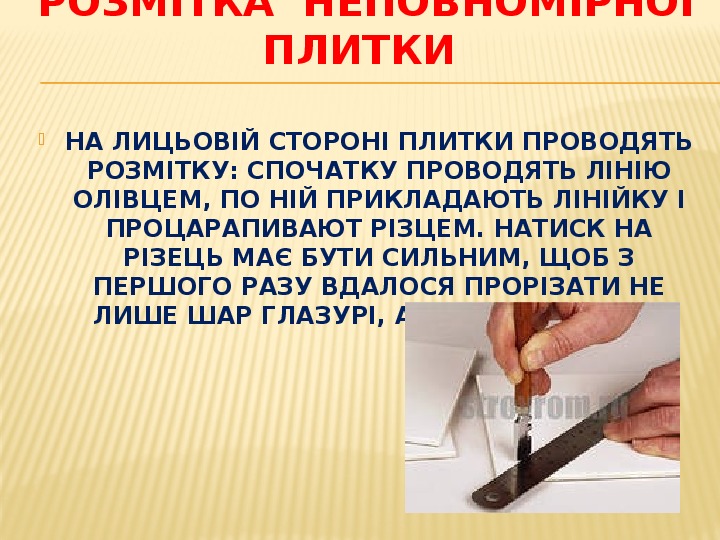 3. З якою метою плитку простукують уздовж лінії надрізу?