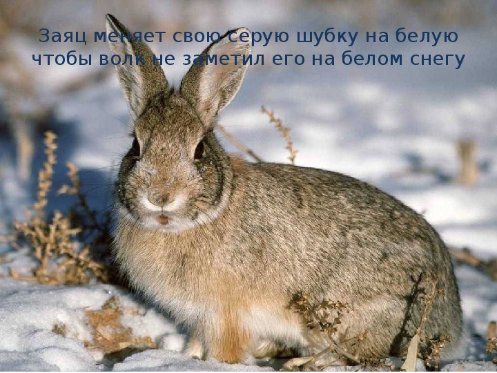 Заяц меняет свою серую шубку на белую