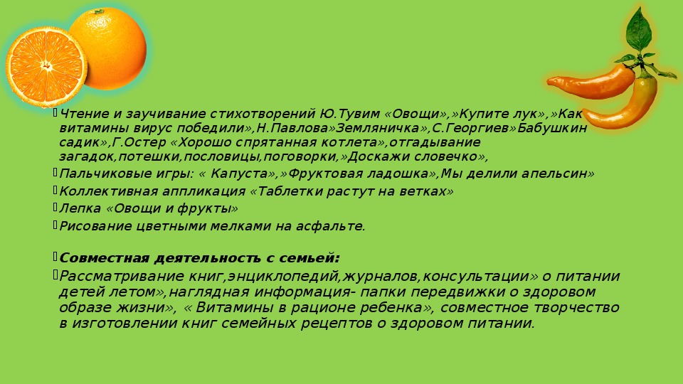 образе жизни», « Витамины в рационе ребенка», совместное творчество