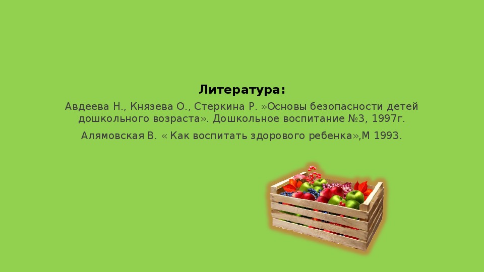 Алямовская В. « Как воспитать здорового ребенка»,М 1993.