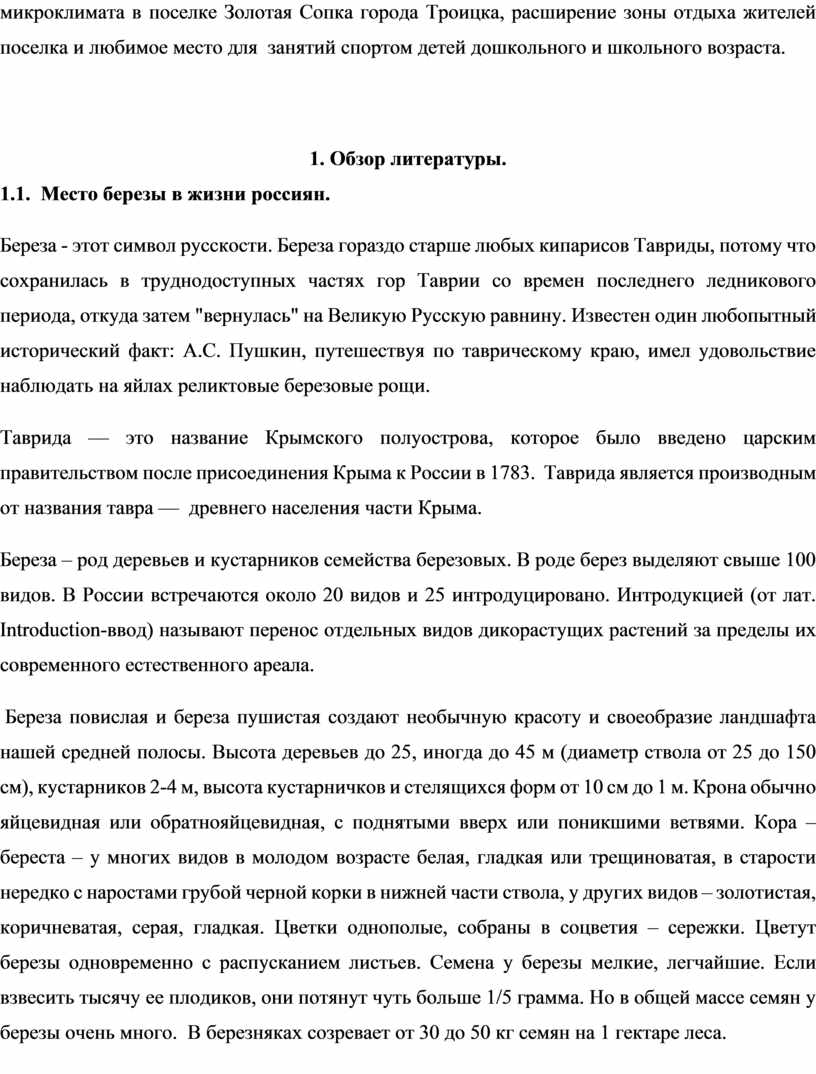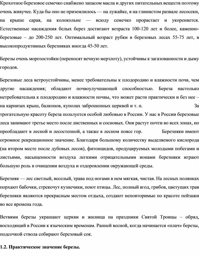 1.1. Роль березы в жизни россиян …............................................................................................5
