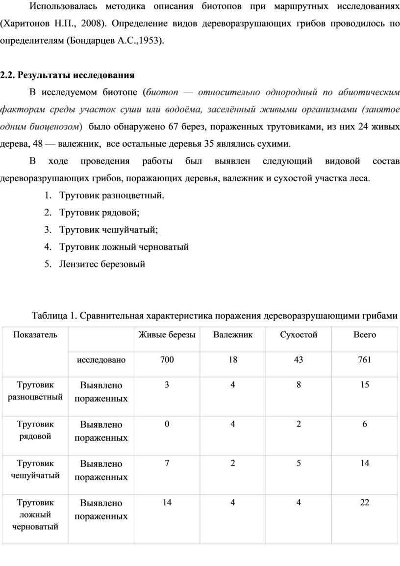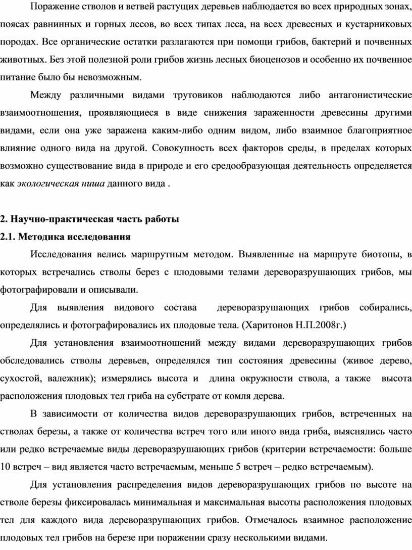 Методологической основой являются научные методы, которые основываются на требованиях объективного и всестороннего анализа природных факторов сопутствующих развитию трутовиков.