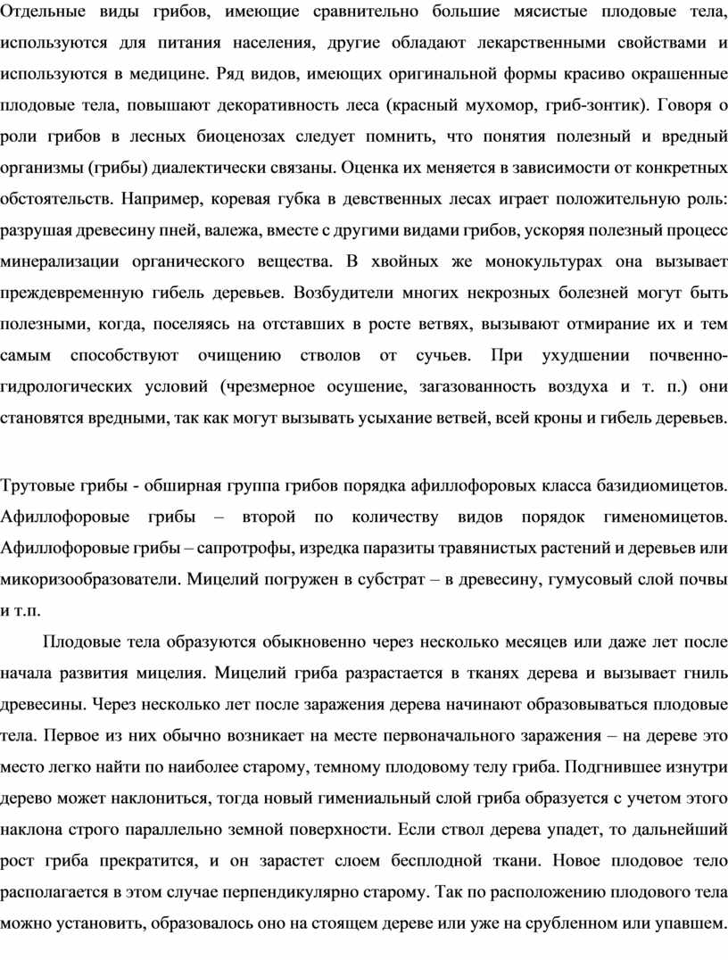 животных и человеке, портят продукты питания. Дереворазрушающие грибы наносят
