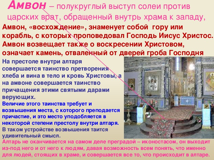 Амвон возвещает также о воскресении Христовом,