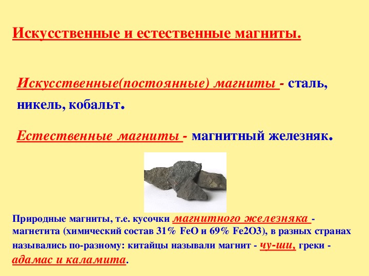 магнетита (химический состав 31% FeO и 69% Fe2O3), в разных странах