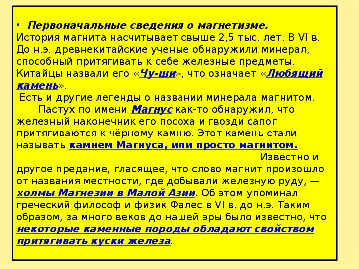 История магнита насчитывает свыше 2,5 тыс. лет. В VI в.