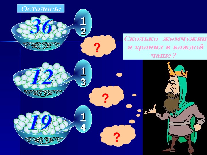 В первой чаши осталось 36 жемчужин,