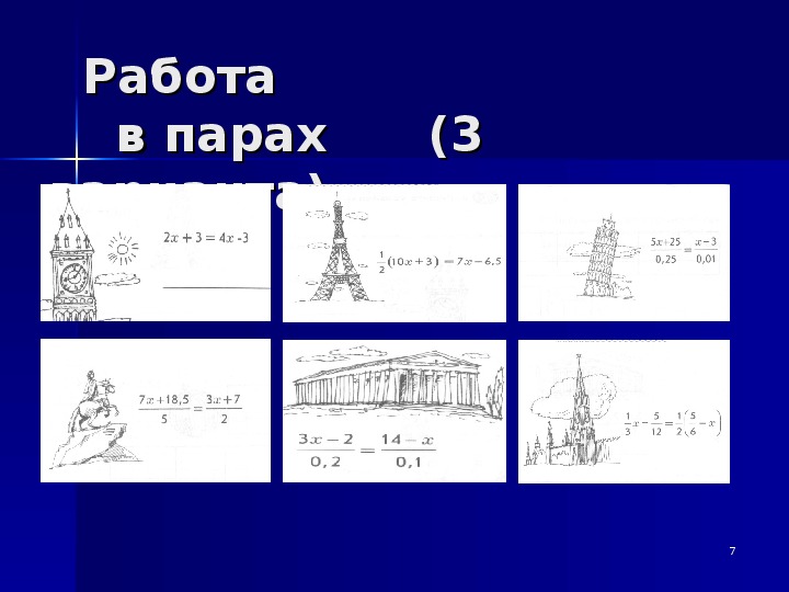 обратно. Каждой паре выдается маршрутный лист. Решив все уравнения, определяется маршрут путешествия.Презентация к уроку