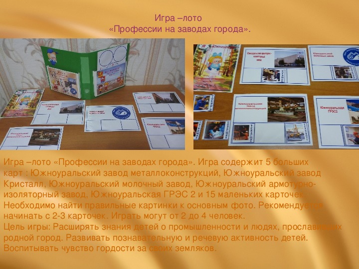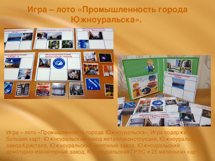 Игра – лото «Промышленность города Южноуральска». Игра содержит 5